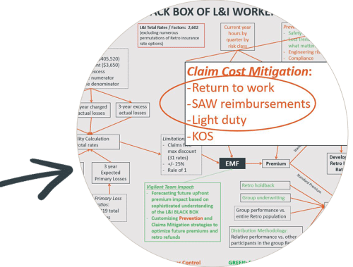 You might also recall the ridiculously busy but truthful graphic from our webinars, focused on factors employers can control to minimize costs.